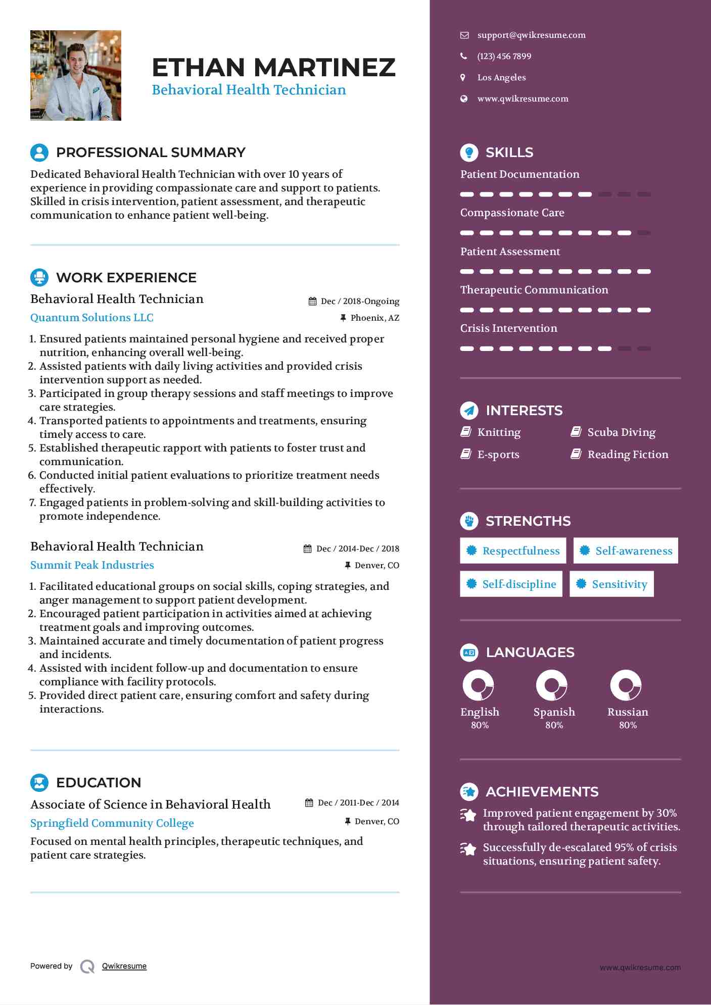 Behavioral Health Technician Resume Samples Qwikresume